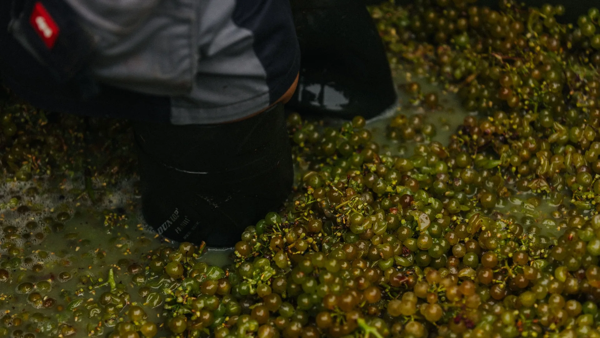 But before the machine processing begins, we first put our hands and feet to work. First, it is read with many hands and then mashed with feet. During mashing, the skins of the grapes are torn and the solid and liquid components mix. This favors the influence of phenols on the wine. Which ultimately determine the character and taste. It should have something earthy about it. Which is made possible by this procedure.