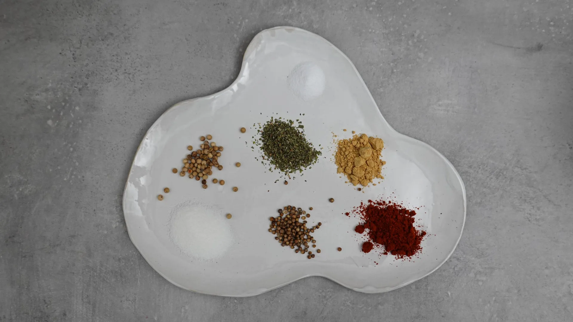 Arriving at the Food Lab, we first prepare our vegetables. We clean the beet and celery with a soft vegetable brush, remove the stems and roots and cook the beet and celery in the oven at 180 degrees for one hour. This reduces the moisture and concentrates the flavor. The carrots, on the other hand, we blanch briefly, so they remain crunchy and retain a bright color. Clean the broccoli into florets and set aside. For the sausage mixture, we parry the pieces of meat and cut them into 2×2 cm cubes. We let the cubes freeze at -18 degrees, this is important because heat is generated in the meat grinder. This heat coagulates the protein, which we need for binding. The meat takes about 20 minutes to freeze, then we turn the meat through the grinder. After that, we cool it again. For the sausage we use spices such as coriander seed, paprika powder, ginger, marjoram and pepper. To get the color we take citric acid and pickling salt to help, both prevent the meat from turning gray.