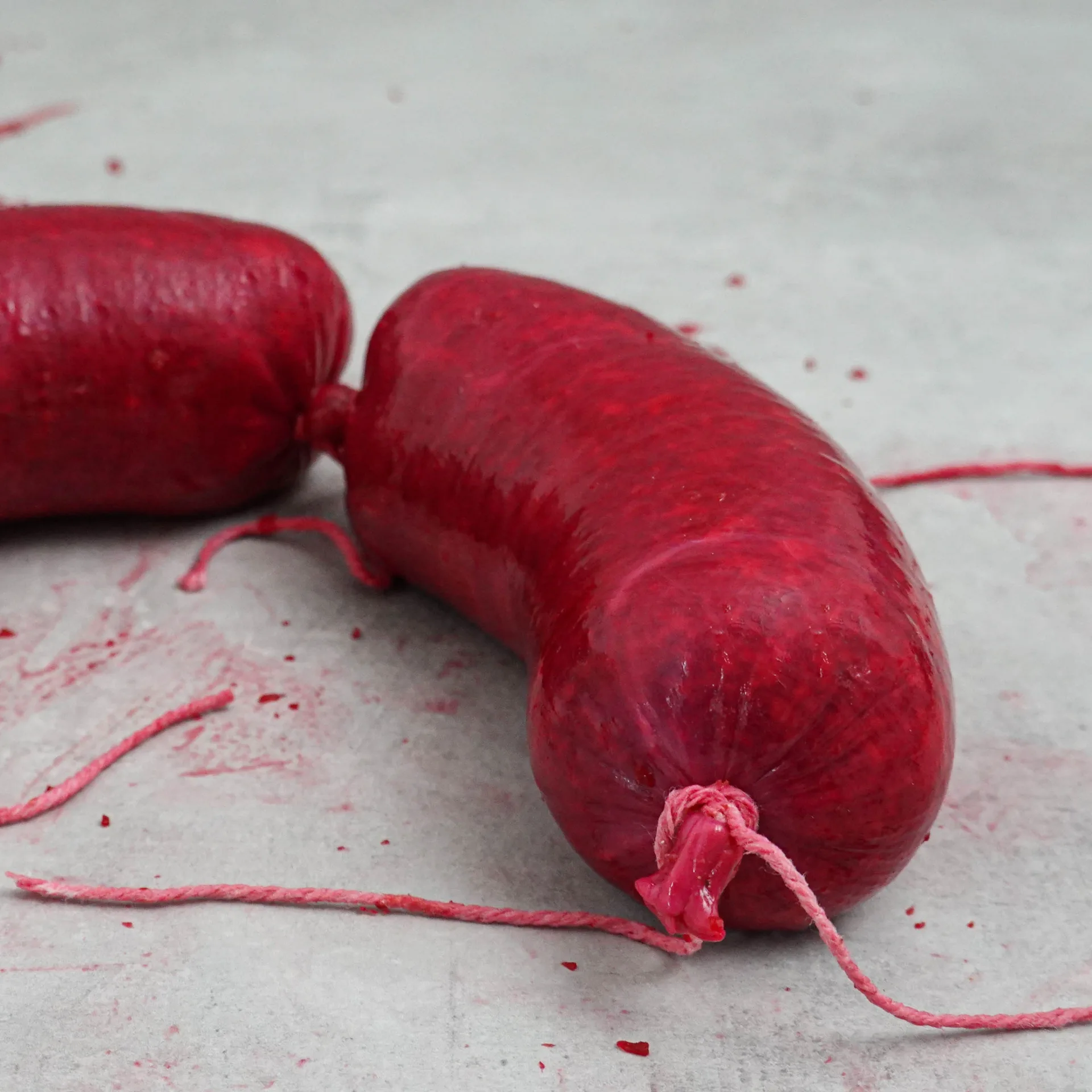 Vegetables are our meat but still this time we venture into the meat of animals. So far we have been more dedicated to substitute products, now we are doing a mixed product. Not vegetables, not sausage, but vegetable sausage, or rather vegetable sausage 2, because we have recently produced a first variant in the form of vegetable charcuterie matured with koji. So it’s all about the vegetables – in the sausage.