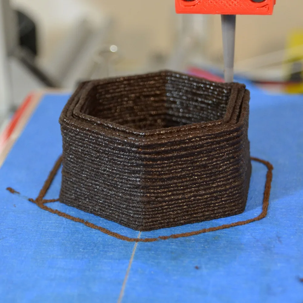 Millions of tons of coffee grounds are generated annually globally. With the growing interest of upcycling and reusing the bi-product, numerous innovative concepts and projects have been in research. Michael Rivera and his team have developed a process on how to recover spent coffee grounds from local coffee shops and convert them into a material for 3D printing. The material consists of over 85% spent coffee grounds mixed with cellulose gum, xanthan gum, and water. All objects printed with this material are fully biodegradable and can even be composted at home in contrast to thermoplastics typically used for 3D printing. All objects made with this material can also be broken up, put back into a coffee grinder, and re-printed again to eliminate waste when prototyping. Not only does this material reduce waste, it also minimizes energy use as it uses no heat during printing.