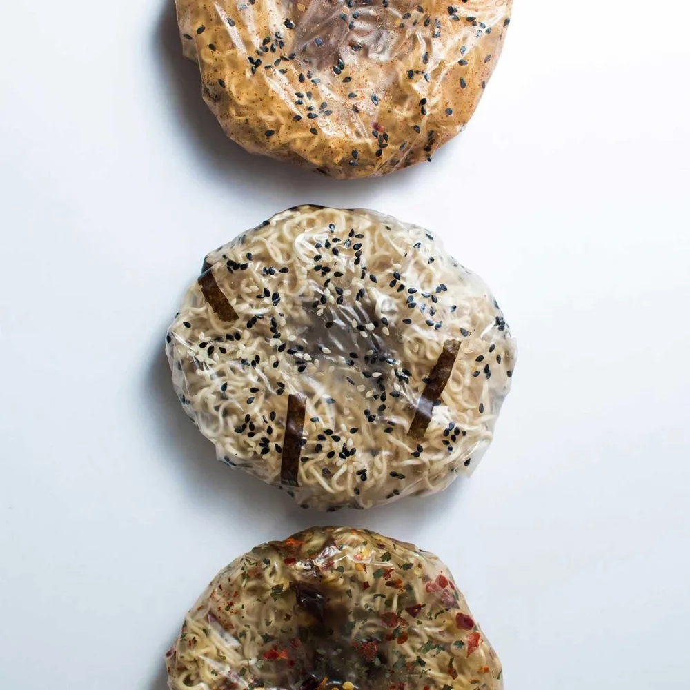 As a product designer, Grounds immediately went to work on prototyping a solution to this problem. The idea: an edible, dissolvable pasta package. A heat-sealable bioplastic film made of an edible, tasteless starch-based bioplastic is said to ensure that the noodles stay fresh but dissolve on contact with boiling water. The packaging thus simply becomes the sauce, and the waste problem also literally dissolves. To avoid the plastic bags of spices typical of instant food, the flavors are incorporated directly into the edible film during production. Only a hygienic, wax-coated paper sleeve is to serve as outer packaging for the pasta packages. The innovative concept could thus make it possible to enjoy instant ramen noodles without a guilty conscience in the future.