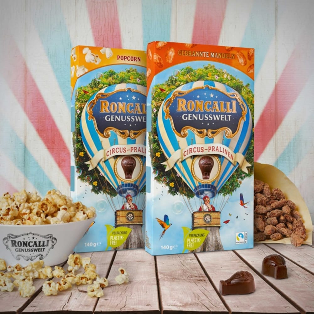 A lot of circus about sustainability or an artistic tour de force in terms of packaging? Circus Roncalli has come up with something very special for its 45th anniversary: delicious chocolates in the shape of Roncalli’s trademark hot air balloon. The varieties are, of course, typical of the circus: “popcorn” and “roasted almond”, made exclusively from natural ingredients, with 100% Fairtrade cocoa.