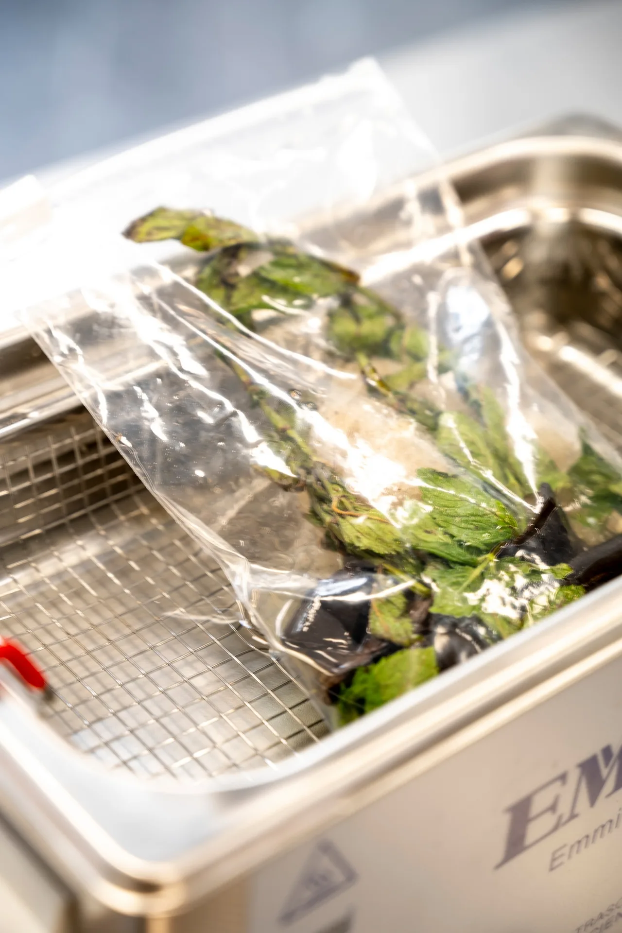 Inspiriert von Harold McGees »Nose Dive«, Stefan Wiesners »Wurstwerkstatt« und dem Wissen über Modifikateure, die besonders zur Banane harmonieren, begeben wir uns ins Banani-Labor. Hier extrahieren wir Düfte aus Banane, Grüner Minze und Schafwolle und konservieren sie in Alkohol. Die entstehenden Extrakte überraschen und eröffnen ganz neue Duftwelten.