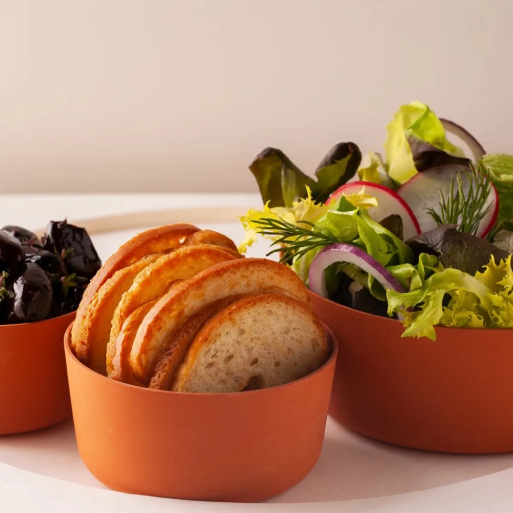 Die Becher sind leicht stapelbar, auslaufsicher und eignen sich für kalte und heiße Getränke. Es werden jetzt größere Schüsseln hergestellt, die für heiße und kalte Speisen geeignet sind.