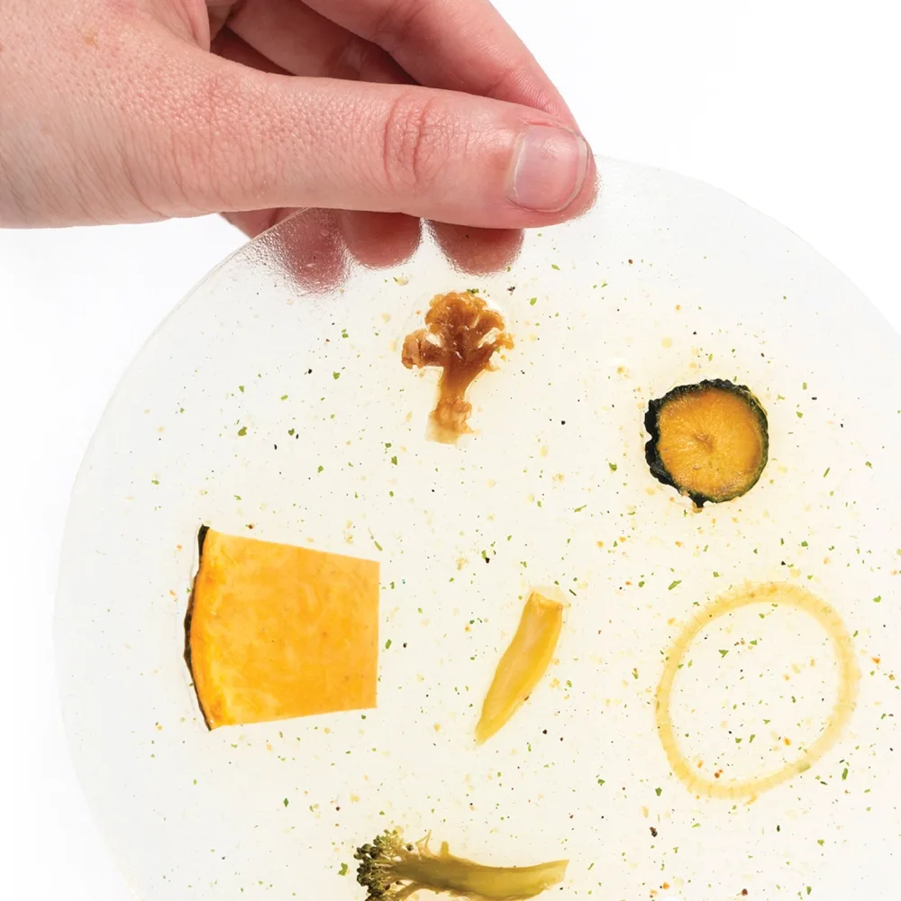Jedes Gericht enthält alle Gewürze und Aromen, die für eine vollständige Zubereitung erforderlich sind. Das Gericht wird in der Spüle abgespült, in kochendem Wasser gegart und gegessen! Genau wie ein Apfel, der in großen Mengen verkauft wird, Schmutz ausgesetzt ist, in einer Tüte transportiert und vor dem Verzehr gespült wird, wird NakedPak vor dem Gebrauch gespült. Die endgültige Formel enthält mehrere essbare, natürliche Materialien, wobei der Hauptbestandteil aus Algen hergestellt wird. Das resultierende Material ist transparent, geschmacksneutral und kann als zweidimensionale Folie oder als dreidimensionale Struktur hergestellt werden.“ – direktes Zitat von naamanicotra.com/nakedpak