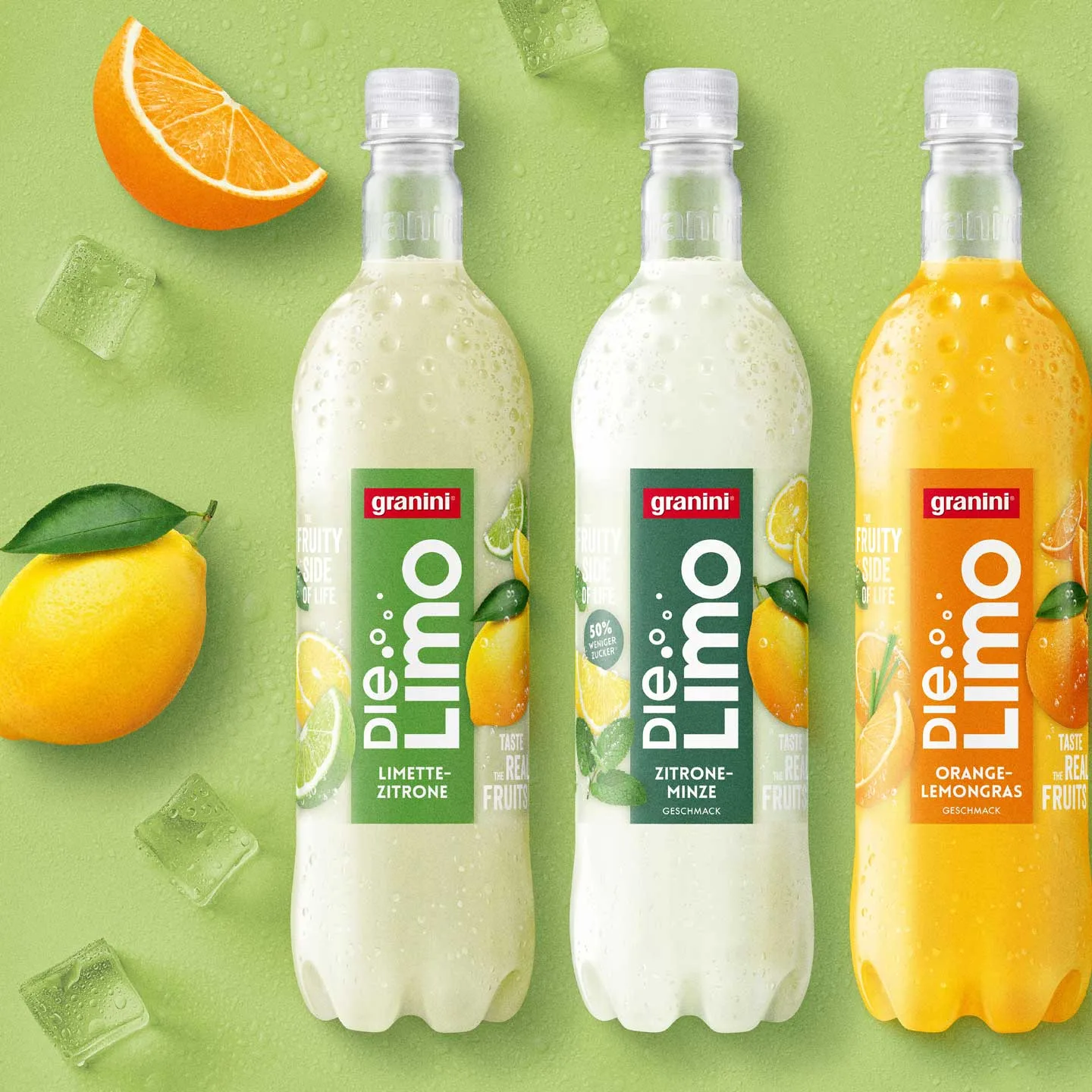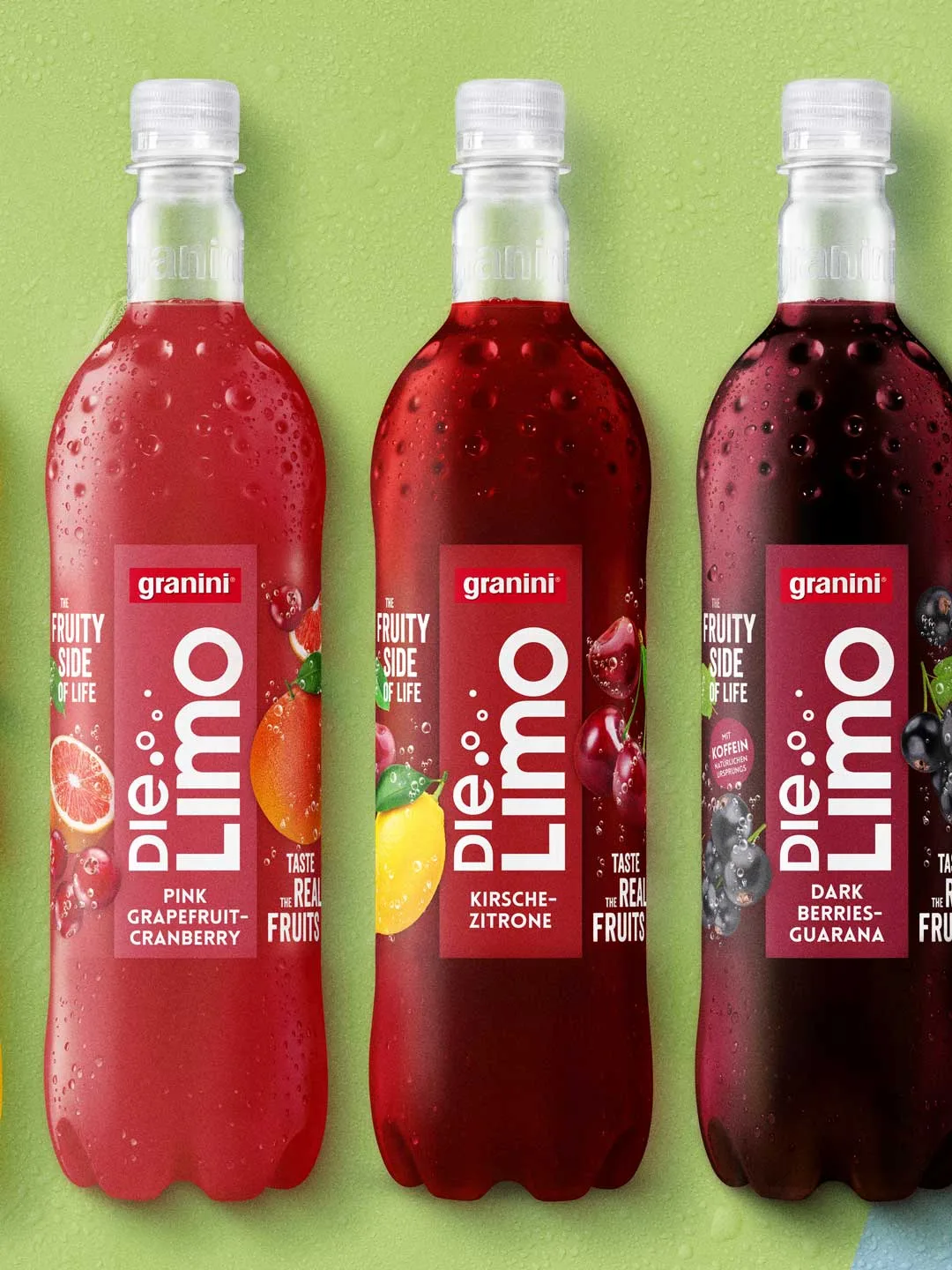 Neue Sorten. Neue Positionierung. Neues Packaging Design. In enger Zusammenarbeit mit granini haben wir den neuen Look für das Gesamtsortiment für „Die Limo“ entwickelt.
