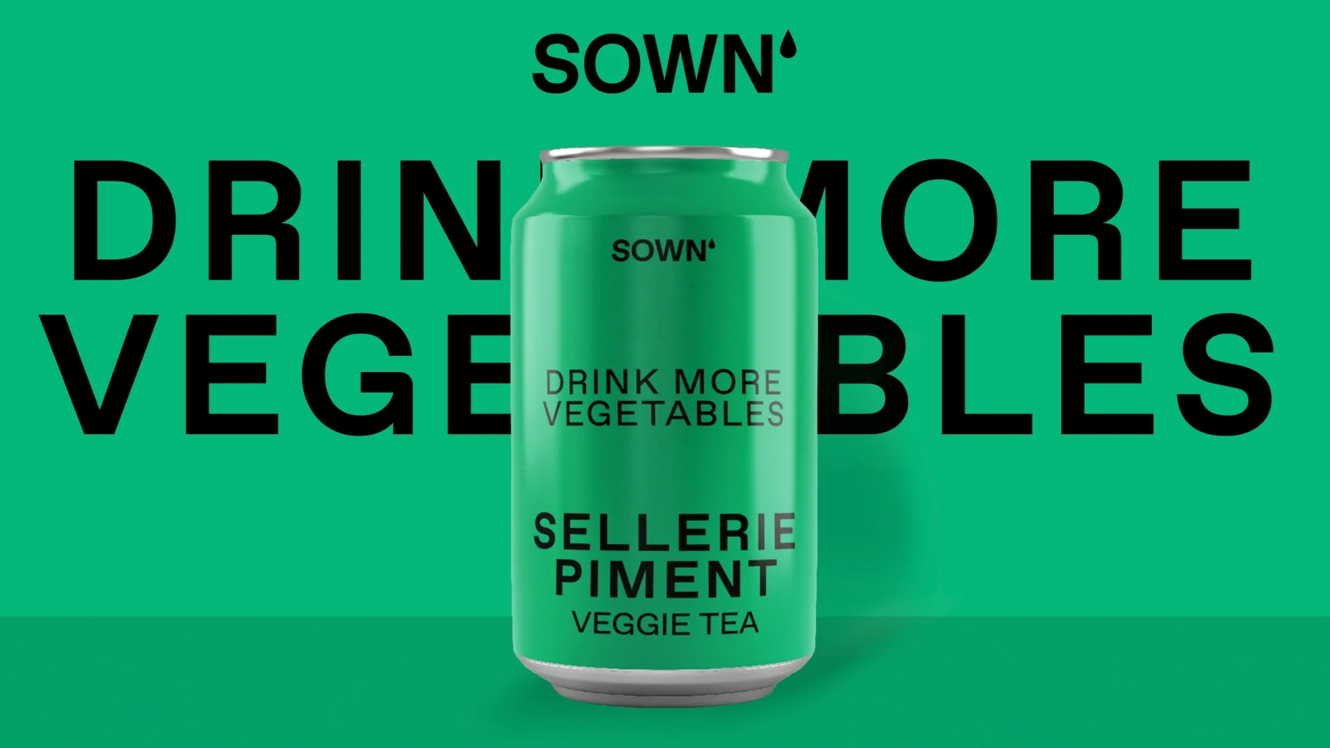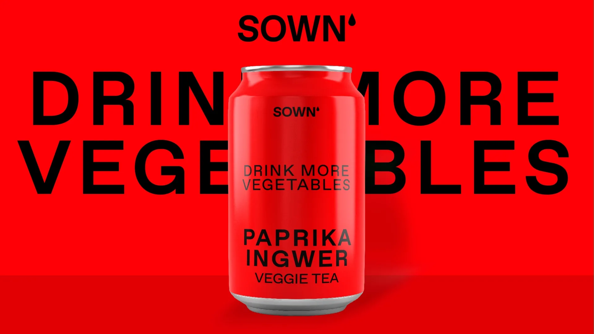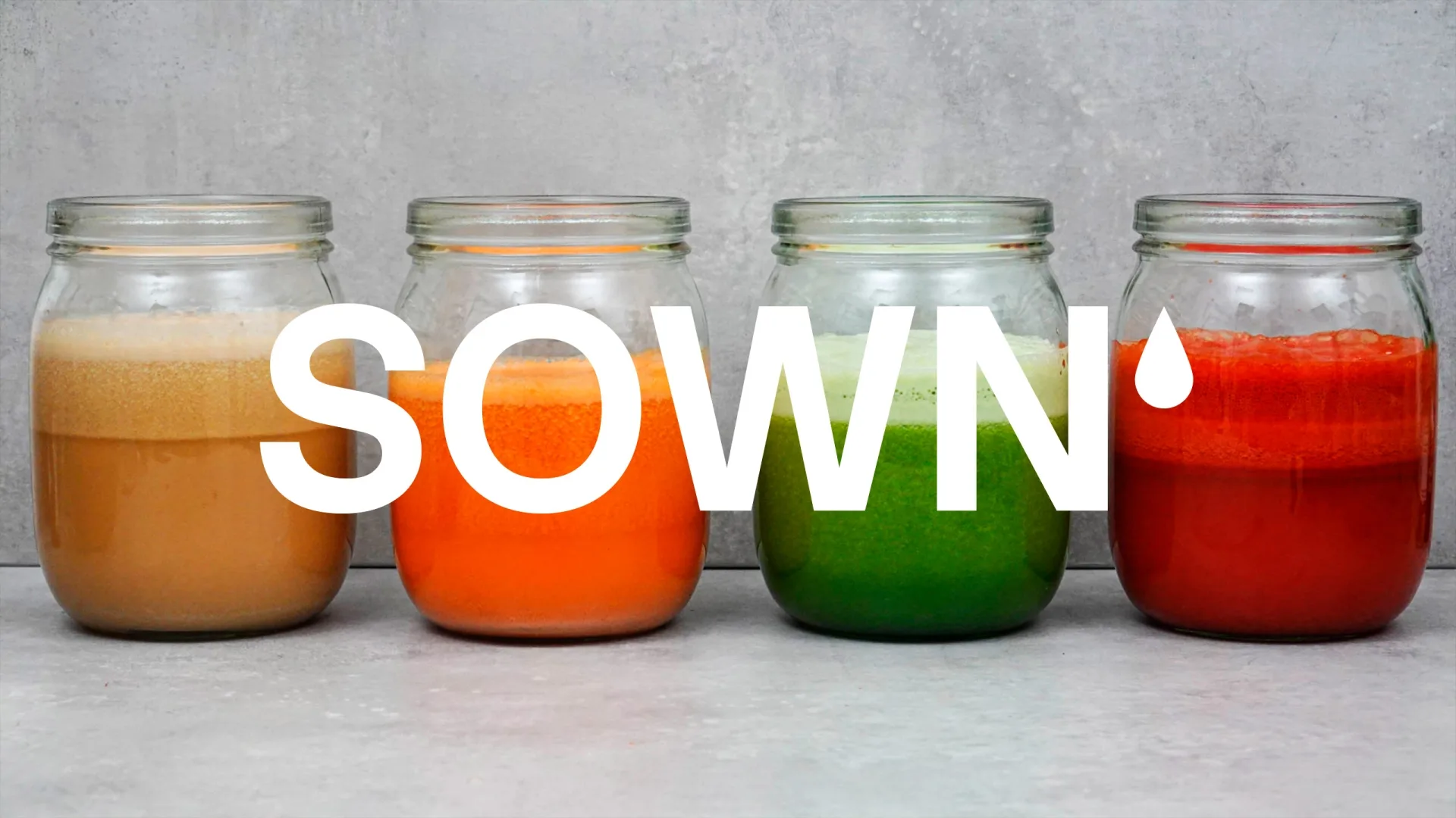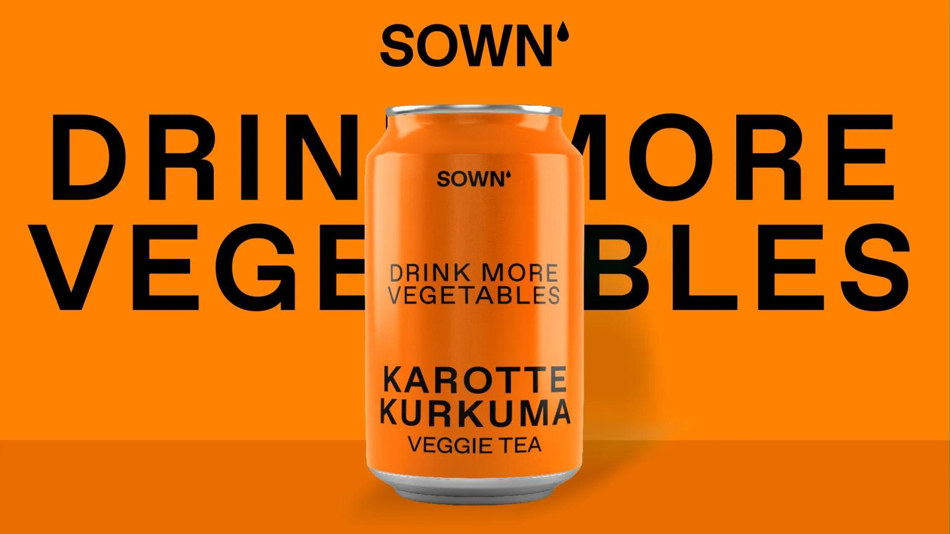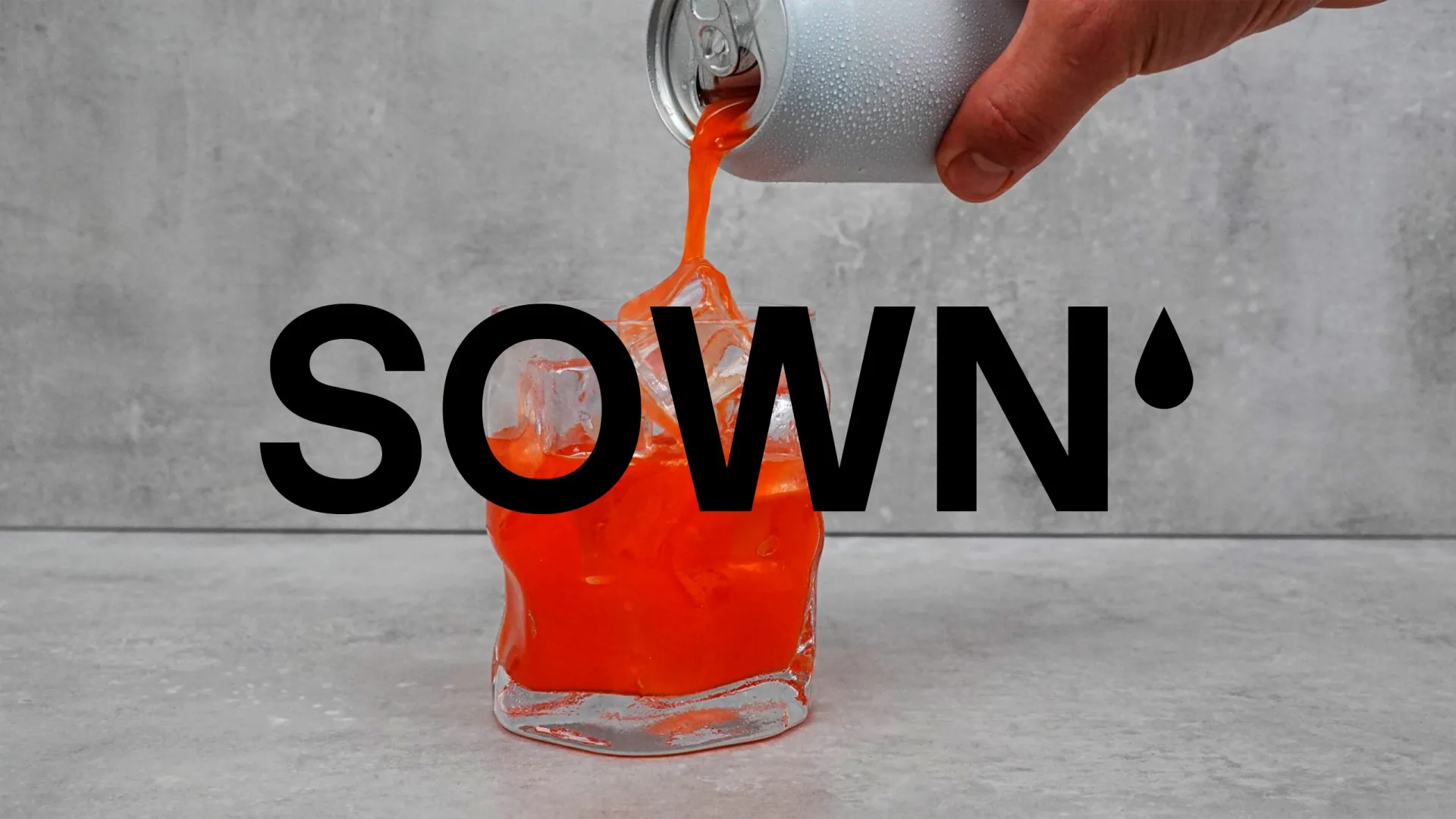 Wir säen Potential für aromatische Getränke, die gesundheitliche Aspekte einer Gemüsebrühe mit dem guten Geschmack eines kühlen Getränks verbinden, eine Art Gemüse-Eistee. Die Marke dazu heißt „sown“ (englisch für „gesät“) und erstrahlt in kompromissloser Schlichtheit.