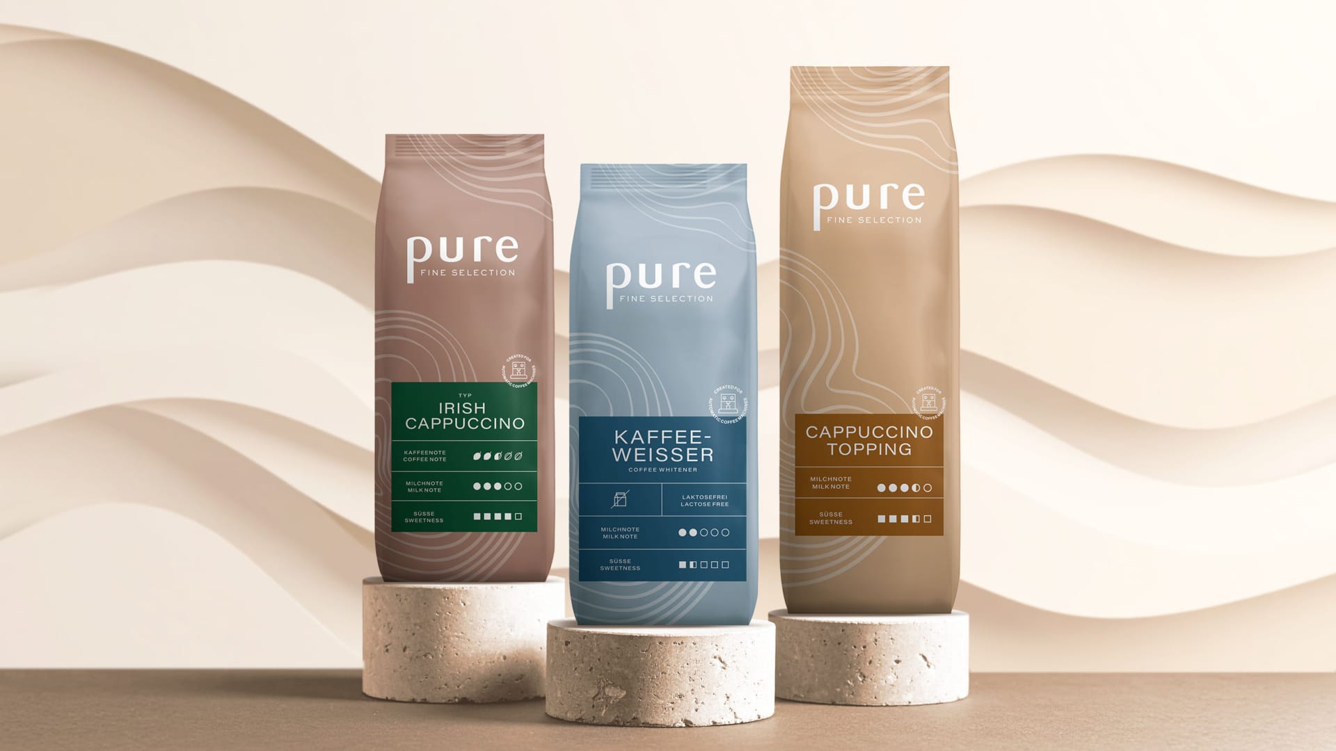 Wir haben die Kakao-Linie “pure” von Tchibo weiterentwickelt. Dieser erfolgreiche Relaunch zeigt, wie ein cleveres Design-Rework ein Produkt im B2B-Markt sichtbar aufwerten kann. Die neue Verpackungsgestaltung überzeugt durch eine klare, intuitive Skala für Intensität und Geschmack.